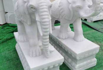 天然青石舊浮雕小象吉祥如意抱鼓石