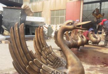 仿銅噴水雕塑,玻璃鋼景觀天鵝水池,為廣場園林擺放