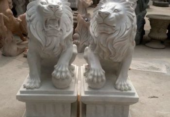 大理石石雕獅子雕塑,完美裝點庭院門口