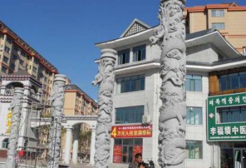 仿古石雕龍柱雕塑,為廣場增添古典魅力