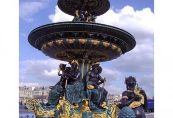 精美歐式西方人物彩繪漆金噴泉青銅雕塑