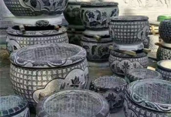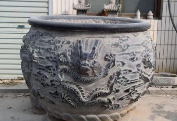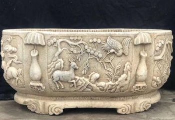 仿古庭院園林石雕浮雕花紋魚缸雕塑