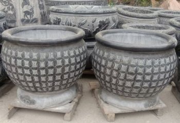 仿古青石水缸魚缸安放荷花刻飾鯉魚