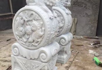 雕刻精美的大理石門口抱鼓雕塑
