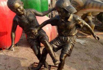 把童趣小孩裝飾擺件——玻璃鋼仿銅小孩下棋踢足球擺件