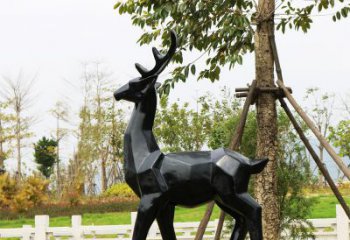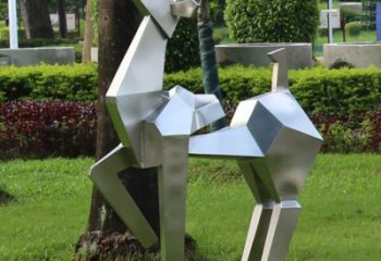 不銹鋼幾何切面鹿雕塑,優雅動物景觀擺件