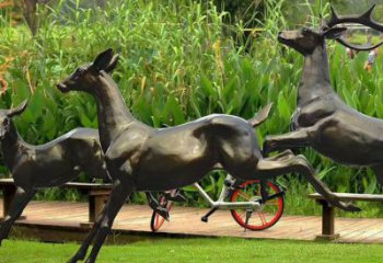 玻璃鋼仿銅梅花鹿雕塑,點綴園林景觀