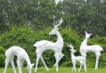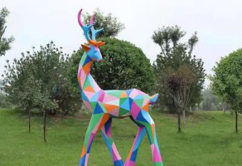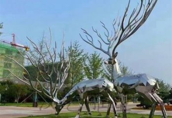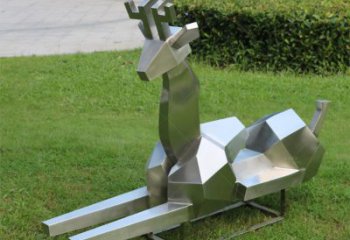 不銹鋼創意園林雕塑——梅花鹿鏡面幾何雕塑