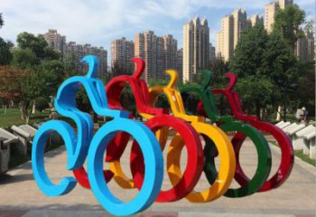 不銹鋼幾何彩繪戶外遠動騎車的抽象人物景觀
