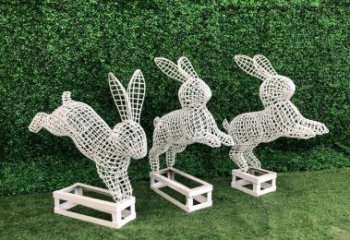花園裝飾白色不銹鋼鏤空兔子雕塑