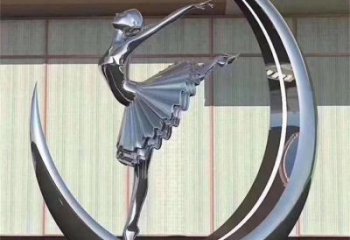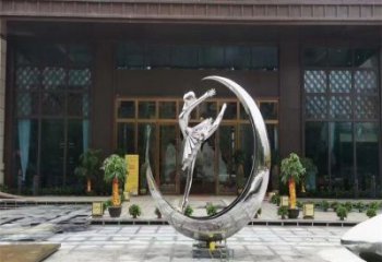 不銹鋼創(chuàng)意月亮上跳芭蕾舞女孩雕塑擺件