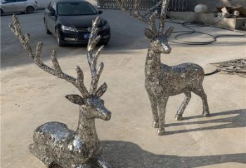 大型不銹鋼鏤空梅花鹿園林裝飾品