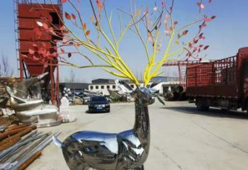 大型不銹鋼鏡面梅花鹿雕塑,美化園林景觀擺件
