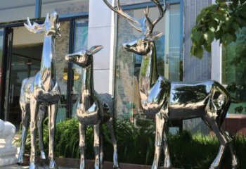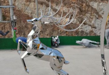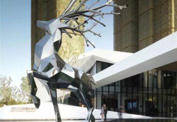 城市中的大型不銹鋼幾何梅花鹿雕塑