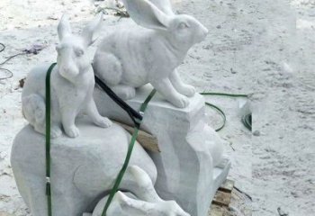 黃色兔子母子雕塑,精美玻璃鋼動物園裝飾