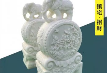 漢白玉小象抱鼓石雕精細裝點庭院門外門墩