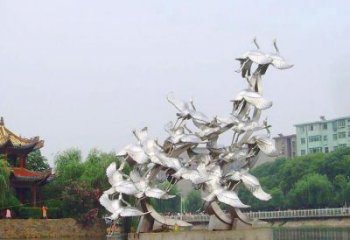 精致不銹鋼仙鶴雕塑,為城市增添創(chuàng)意抽象藝術(shù)