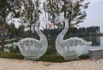 愛情主題公園玻璃鋼卡通愛心天鵝美陳擺件