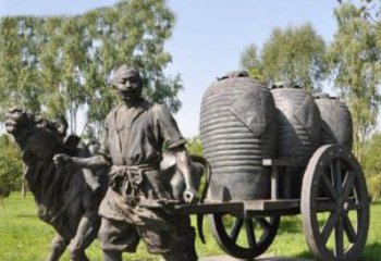 仿銅雕塑民俗人物玻璃鋼農耕干活紀念品