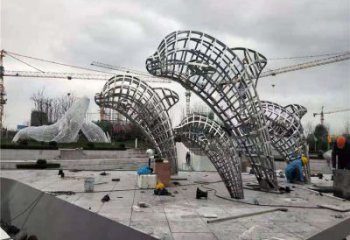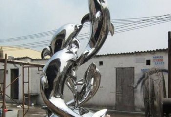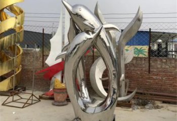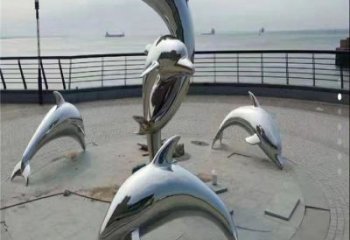 不銹鋼海豚雕塑跳躍在商業街的美麗守護