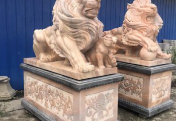 大型石雕獅子雕塑一直是守護人們平安、吉祥的象征。人們認為石獅子可以保護家庭幸福,一般來說大型石雕獅子雕塑都是左雄獅,右雌獅。