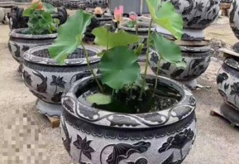 精美大理石浮雕鯉魚荷花舊庭院圓形水缸